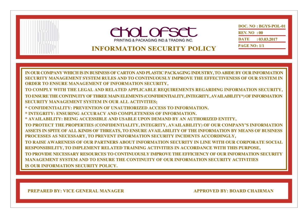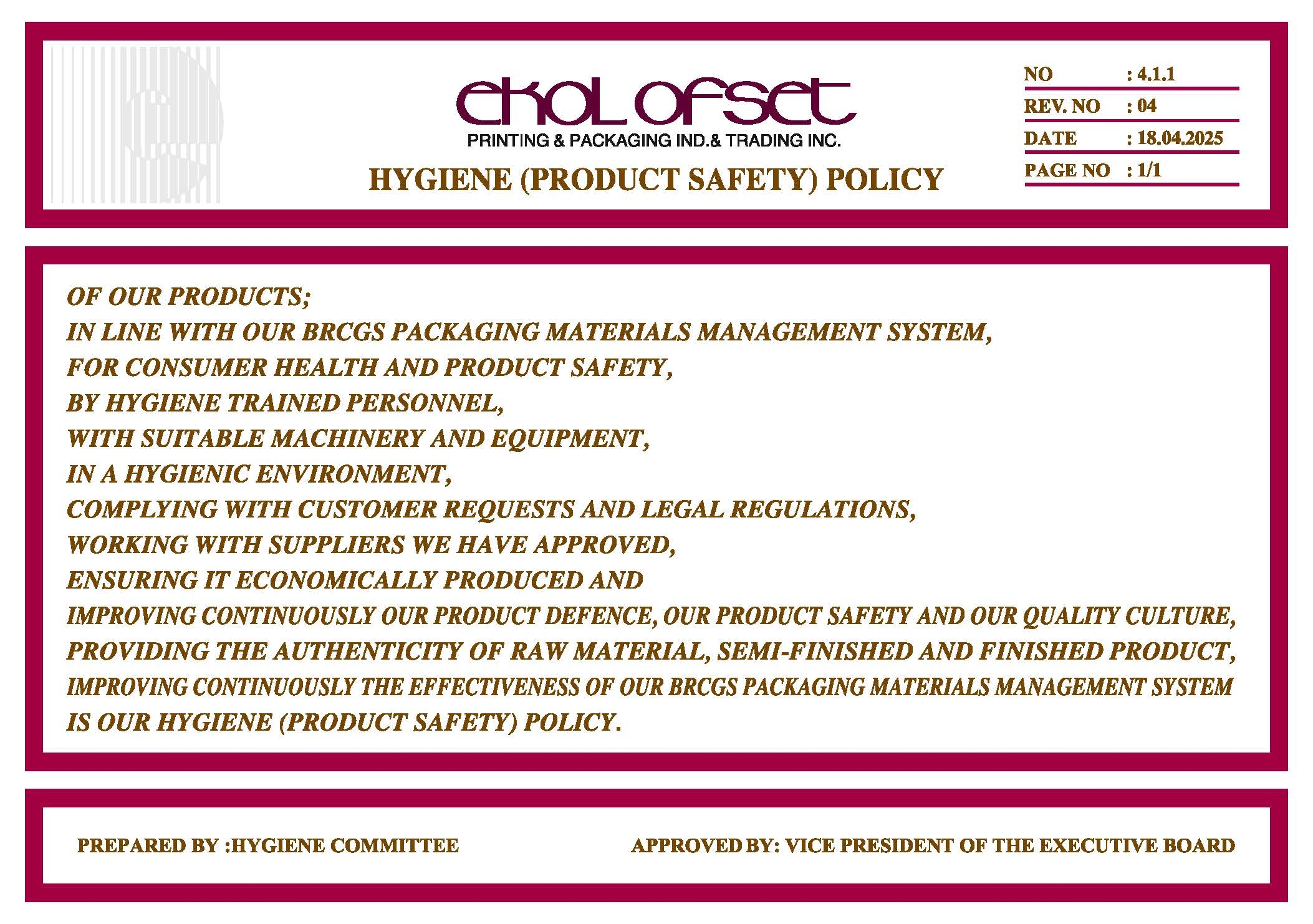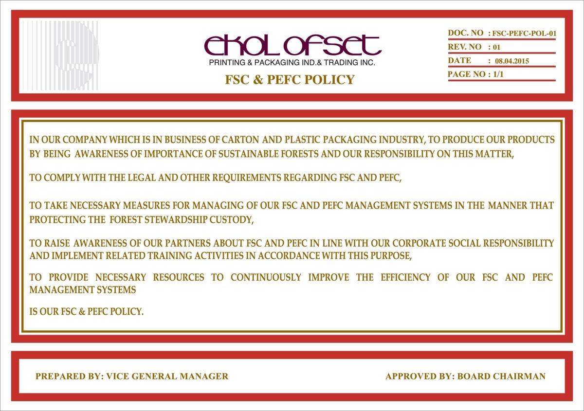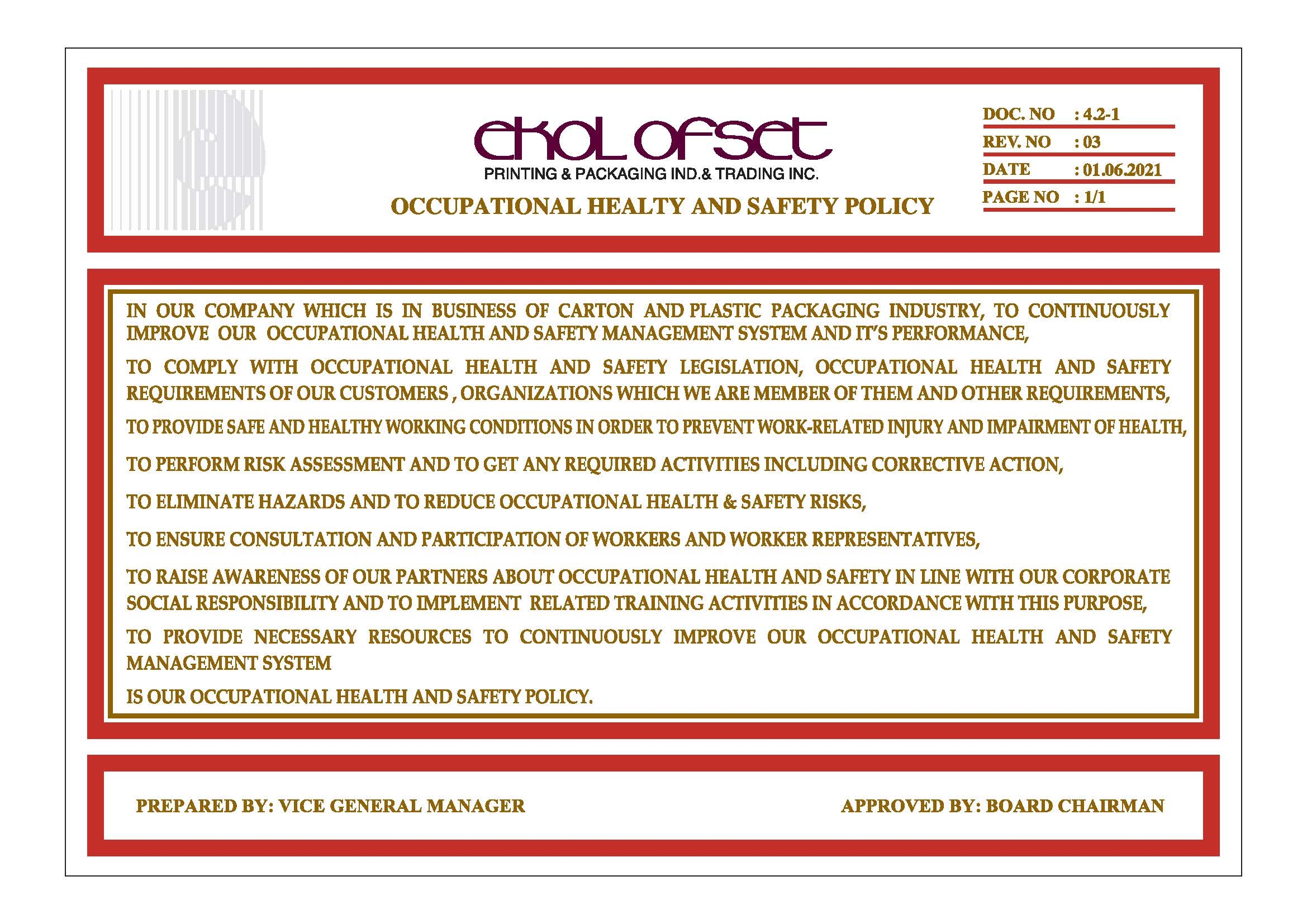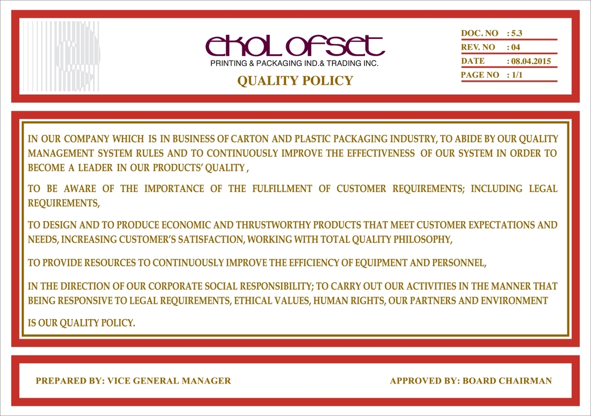 At Ekol Ofset these management systems are successfully implemented by the Quality Director, Food Codex Director, Health and Safety at Work Specialist, Environment Officer, the 15-person Quality Control team, and members of staff in other positions.