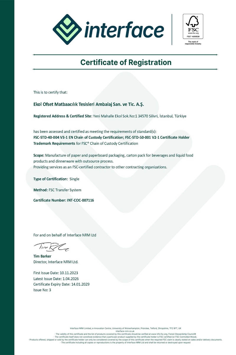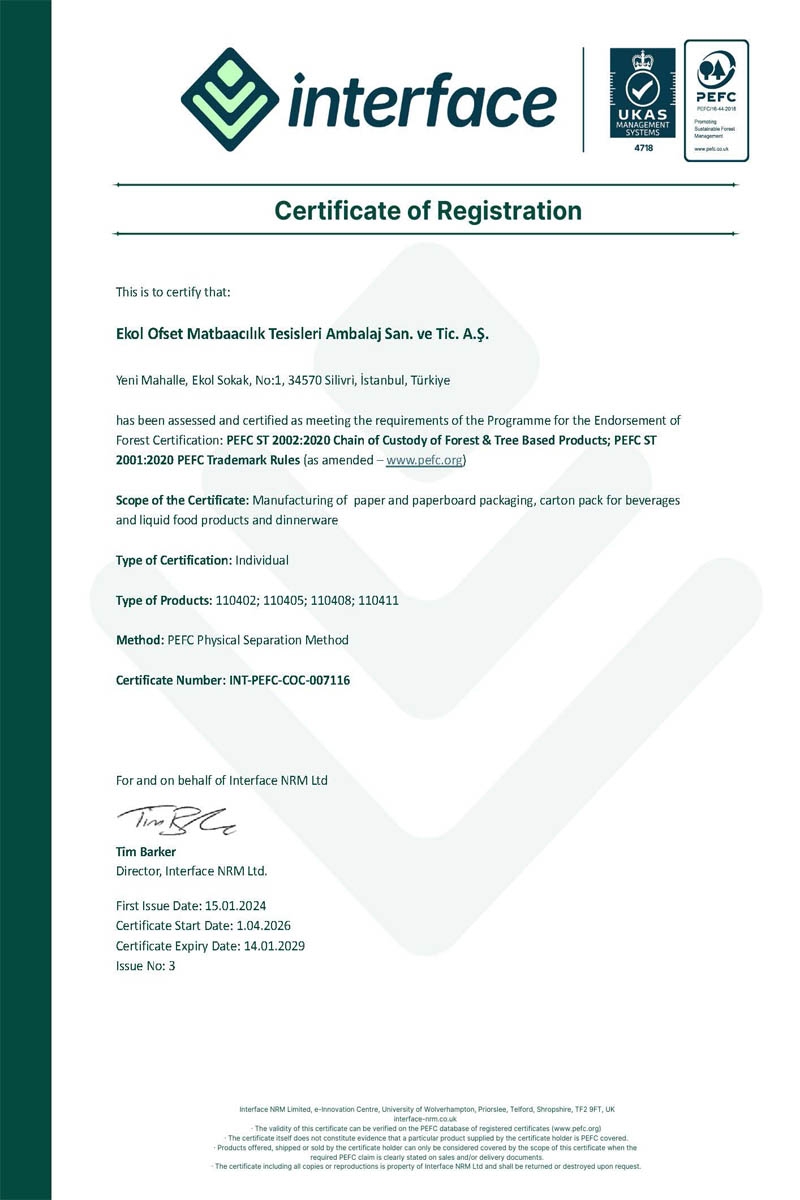 Également en 2013, la société a reçu la certification FSC® (FSC® C119685) et PEFC™ des auditeurs BM TRADA. En 2016, la société a reçu